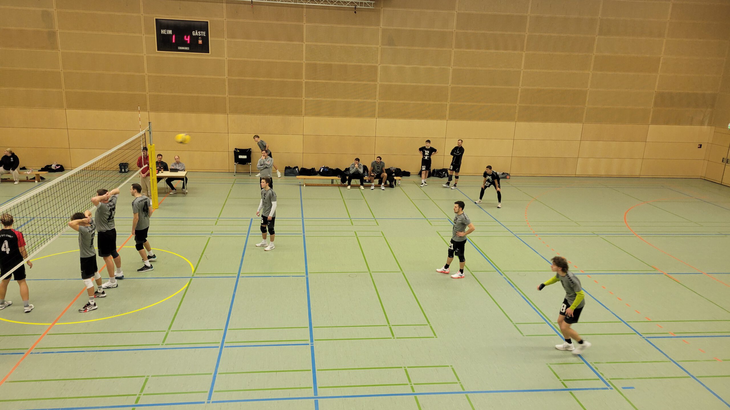 Los ging es für die Herren 1 der Hembach Volleys (Platz 2) gegen den drittplatzierten TSV Zirndorf lll und der SVR legte gleich richtig los und ging durch eine stabile Annahme und viele gute Aktionen im Angriff schnell komfortabel in Führung. Die vielen Zuschauer auf der Tribüne waren sichtlich zufrieden als der erste Satz deutlich mit 25:14 an die Hembacher ging. Die Gäste aus Zirndorf erholten sich in der Folge nach und nach und begannen ihrerseits gut dagegenzuhalten und entschieden den umkämpften 2. Satz mit 22:25 für sich. Trainer Felix Jaesche stellte im 3.Satz die Aufstellung etwas um, was die zunehmende Stärke des TSV jedoch nicht entscheidend unterbrechen konnte. Der SVR stemmte sich gegen die erste Niederlage der Saison, konnte diese trotz guter Leistung jedoch nicht verhindern. Am Ende hieß es 1:3 gegen starke Zirndorfer, die mit ihrer sehr jungen Mannschaft ihre Aufstiegsambitionen aufzeigten.